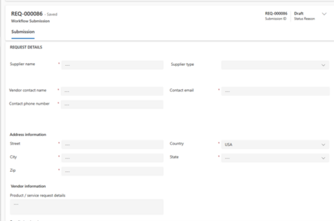 - Upon approval, the vendor receives a secure link to a Power Page where they provide necessary details, including contact information, tax details, banking information, and compliance documents.