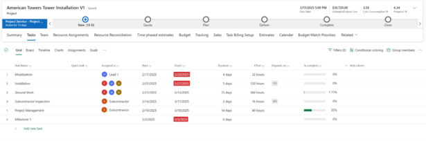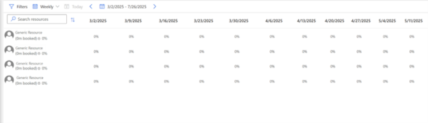 1. Assess Team Availability and Skills – Evaluate the skills, availability, and workload of team members using the Resource Scheduling feature in Project Operations. This tool provides a calendar-based view allowing managers to identify gaps in scheduling and assign resources accordingly with skill-based matching and real-time availability features.