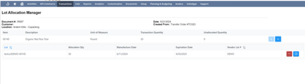 - Having the ability to reverse lot entries without an impact to the parent transaction offers functionality not available from NetSuite’s native lot tracking solution