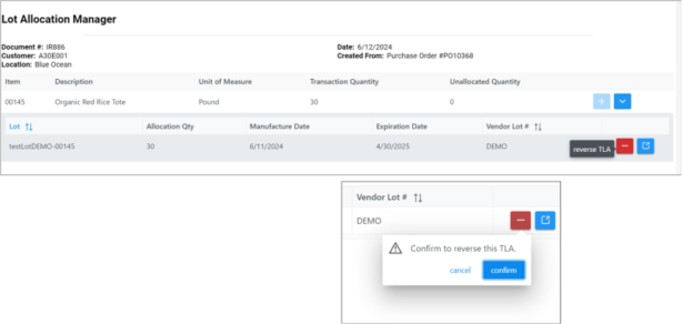 - Consistency of look, feel, and function for lot allocation and reversal enhance the user experience.