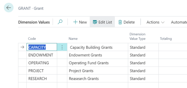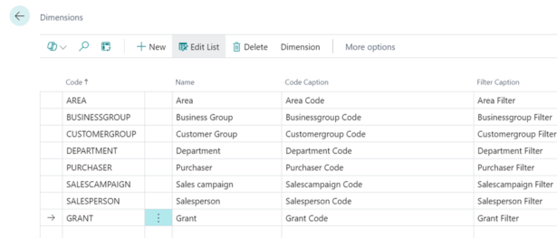 Dimension and its Dimension Values enable companies to setup tags for data in Business Central. This helps to group or categorize data enabling data analysis to be extremely efficient. For example, you could set up a Dimension Called Grants with the values of the different types of Grants you receive. When you enter a cash receipt, it can be tagged with the Grant dimension value making it easier to analyze data by filtering to that data quickly.