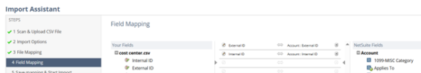 - On the Field Mapping page, map the fields from the left column which contains all fields from the uploaded file to the right column which contains the respective NetSuite Fields. (Please refer to the image below)