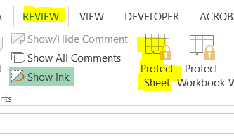- Go to the review ribbon ad click on the “Protect Sheet”.