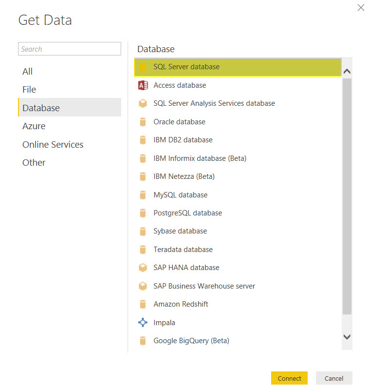 When working with Power BI, a great way to test the functionality is to attach your desktop to a sample SQL database hosted in Azure. The dataset that we will be using is called AdventureWorks. This is familiar to many programmers as Microsoft has reused this example many times for different programming techniques. In this exercise, we will be using the content from the database to create a variety of sample visualizations.