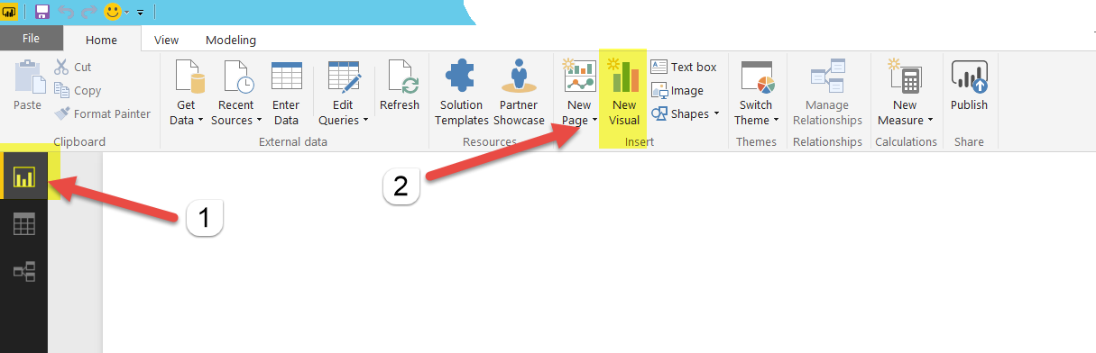 - Once PowerBI Desktop opens, click the Home tab > Get Data in the External Data Group.