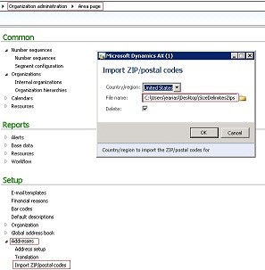 Today I would like to discuss importing Zip Codes into Dynamics AX 2012 from a Text file and also point out what happens in the background.
