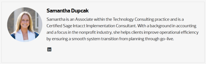 Keep an eye out in upcoming months for more information on other Sage Intacct AI features such as Intelligent Time, Expense Automation, AP and PO Automation, GL Outlier Detection, Close Assistant, and Bank Transaction Assistant.