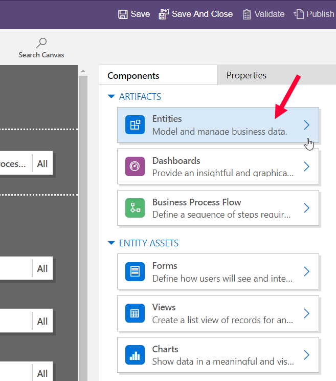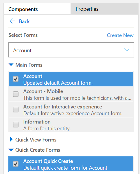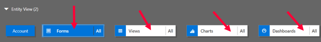 Step 3: Select which views, forms, charts and dashboards* the users can work with on each entity. (*Adding Dashboards specific to any entity is limited to the Unified Interface)