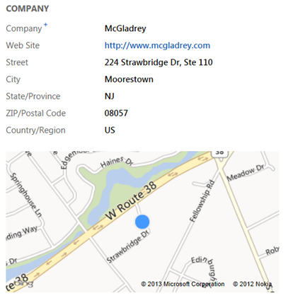 - Integrated Bing Map, this is great addition to Dynamics CRM 2011 for two reasons. Before the update Rollup 12, you had to pay additional cost to have Bing Map integrated in Dynamics CRM 2011, or have unsupported custom development to integrate it. The other reason is if your sales rep is on the road and they have Dynamics CRM 2011 running, they can see where the address of the company or contact they are suppose to meet, a small GPS feature with Dynamics CRM 2011.