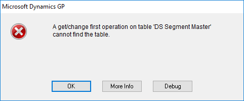 I proceeded to review the table definition in Dexterity and confirmed Database Type is Default and its Series is 3rd Party. The Series got me wondering as I did not create this table originally and I do not often use the 3rd Party series. Searching online led me to this support article which describes controlling the location of Dexterity tables.