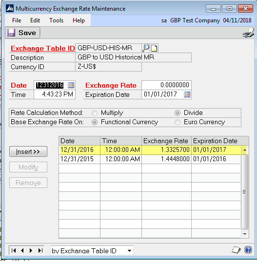 - Update the exchange table that is used for historical accounts with that exchange rate