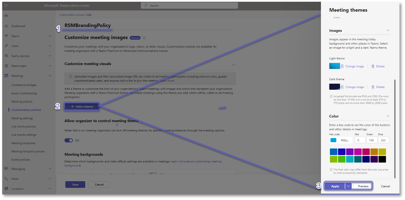 - Here is an example of our custom branding policy we just created within a new meeting lobby!