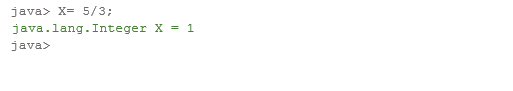 In Java, the / operator is used for integer division. For example, 5/3 will output 1, as shown below using a Java interactive console: