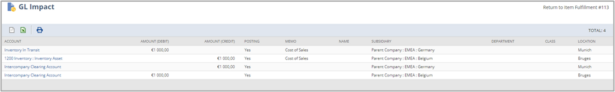 At time of fulfillment, inventory is out of the warehouse but still owned by the beginning location. With DAP, ownership is transferred to the destination location on receipt. With EXW incoterms selected, the intercompany clearing account is impact at time of fulfillment while DAP incoterms impact the intercompany clearing account upon receipt.