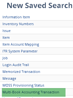 Another thing that changes in a Multi-Book environment is how Saved Searches are used. Once Multi-Book is switched on, you get a new Saved Search node called Multi-Book Accounting Transactions.