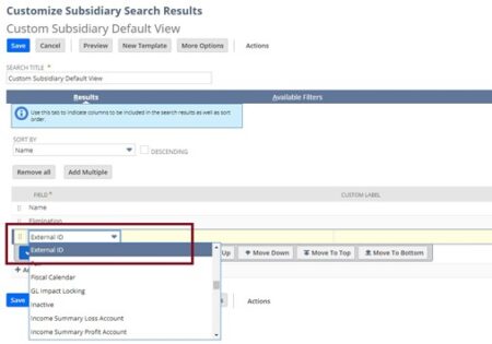 After adding External ID to the results, press the SAVE key. Now your List View for Subsidiaries will show the newly updated External ID value.